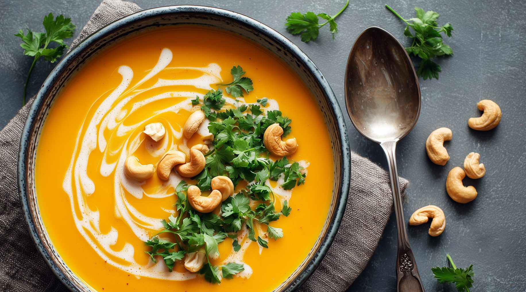 Nutrition Tip: This soup is a wonderful source of beta carotene which is a powerful antioxidant and precursor for vitamin A – this means that the body can create an active form of vitamin A from its ingredients. Vitamin A is used for cellular, bone, and eye health.