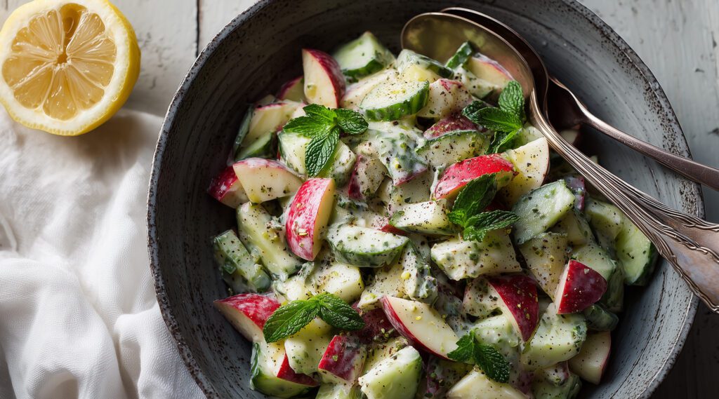 Switch up the garnish to add a different flavor to the salad – instead of mint, try fresh basil leaves!